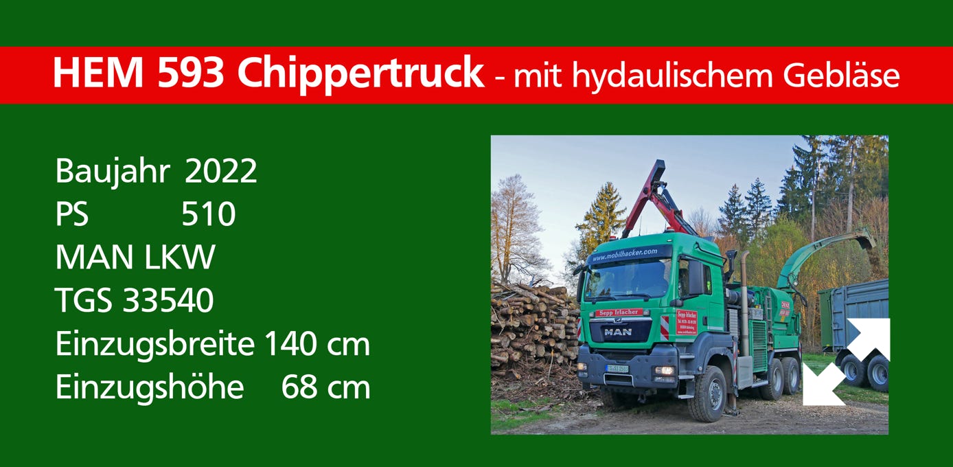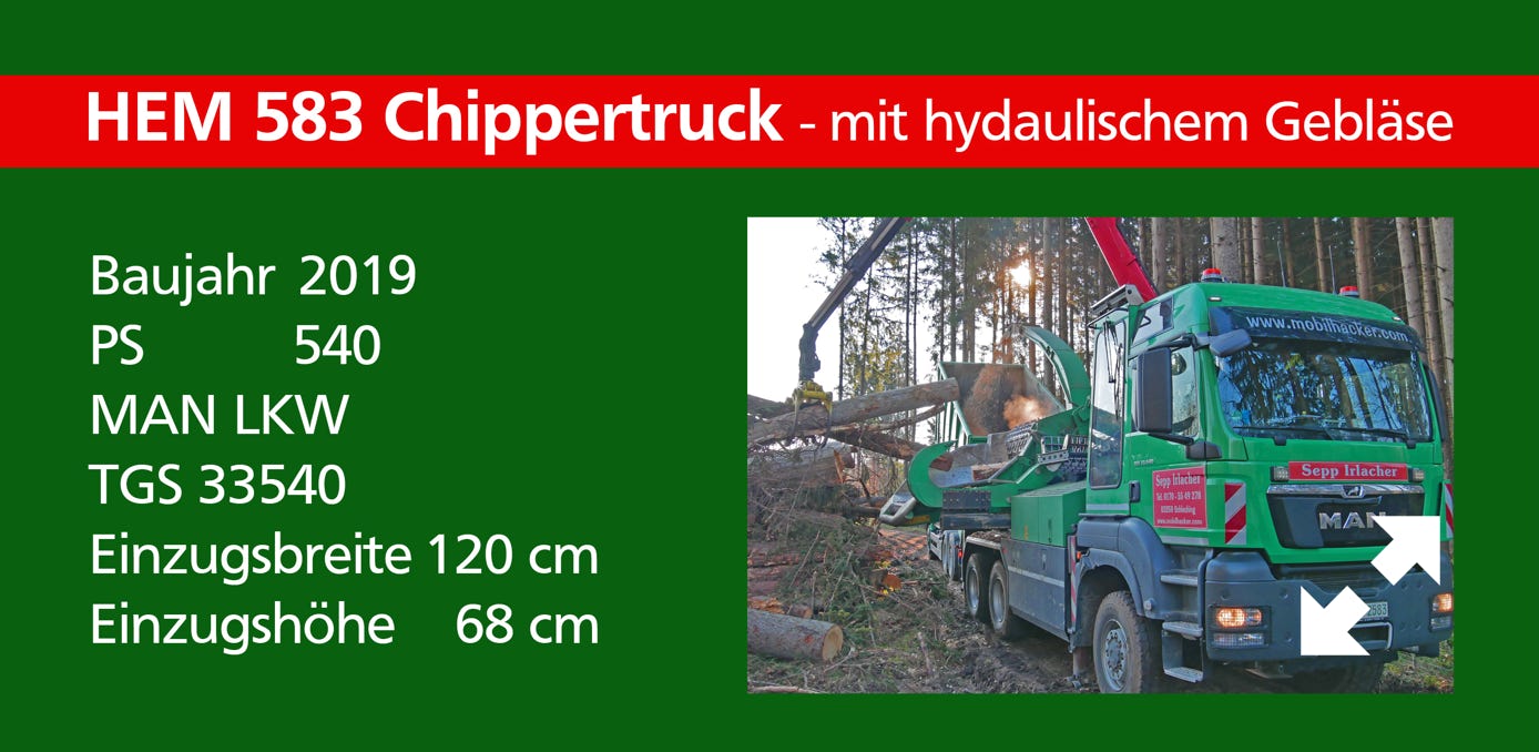 Die Fa. Mobilhacker wurde im Jahr 2004 von Sepp Irlacher gegründet. Der erste Hacker war ein Starchl Anhängerhäcksler mit Aufbaumotor, welcher von einem Fendt Vario 926 gezogen wurde.