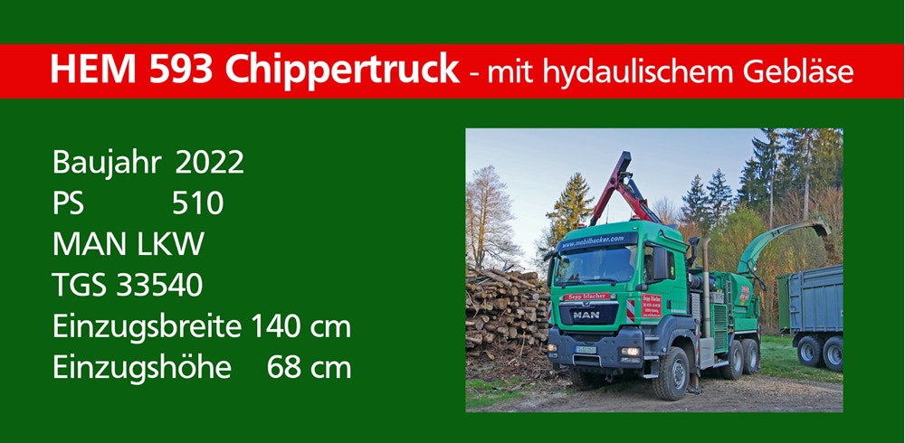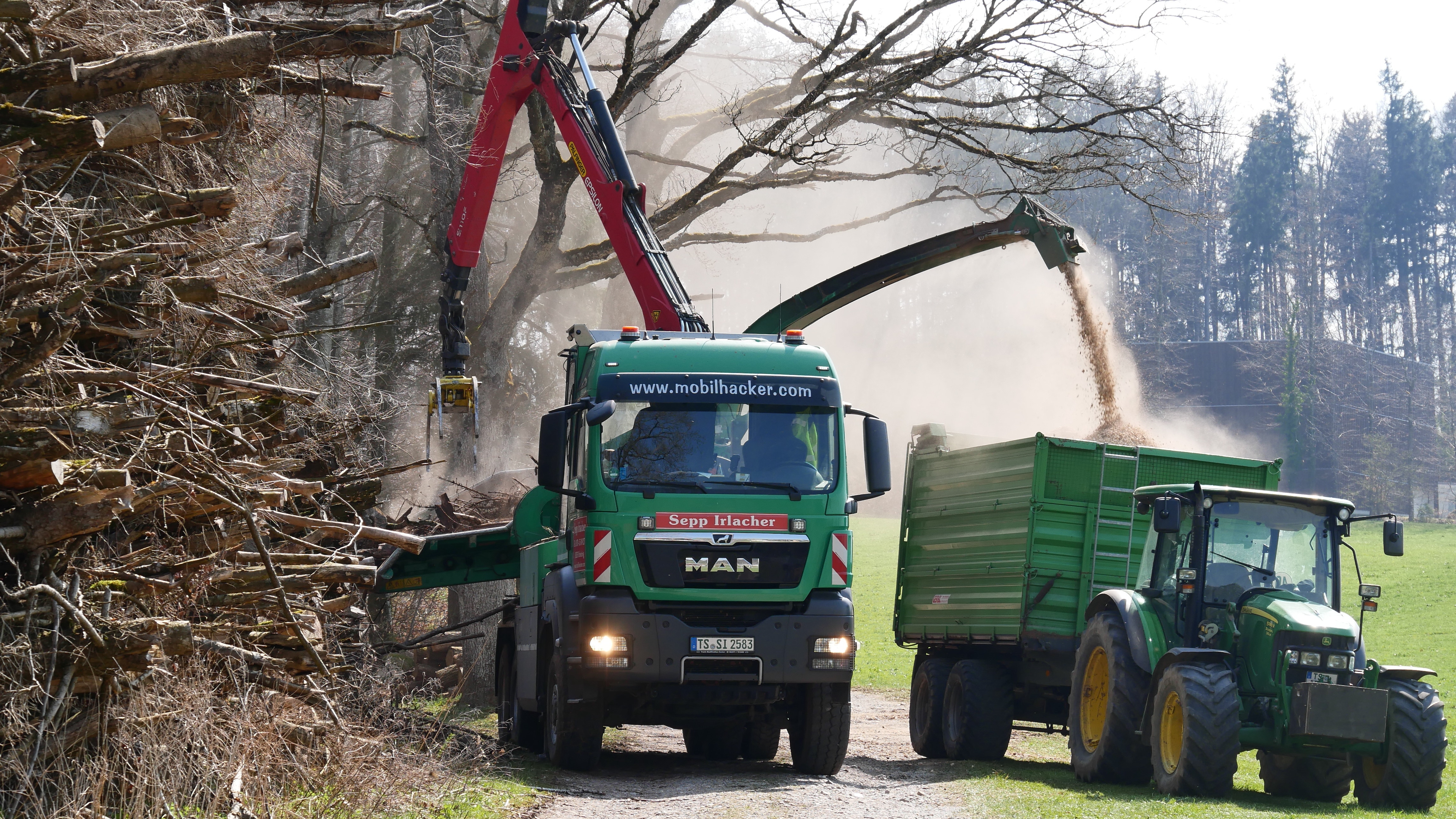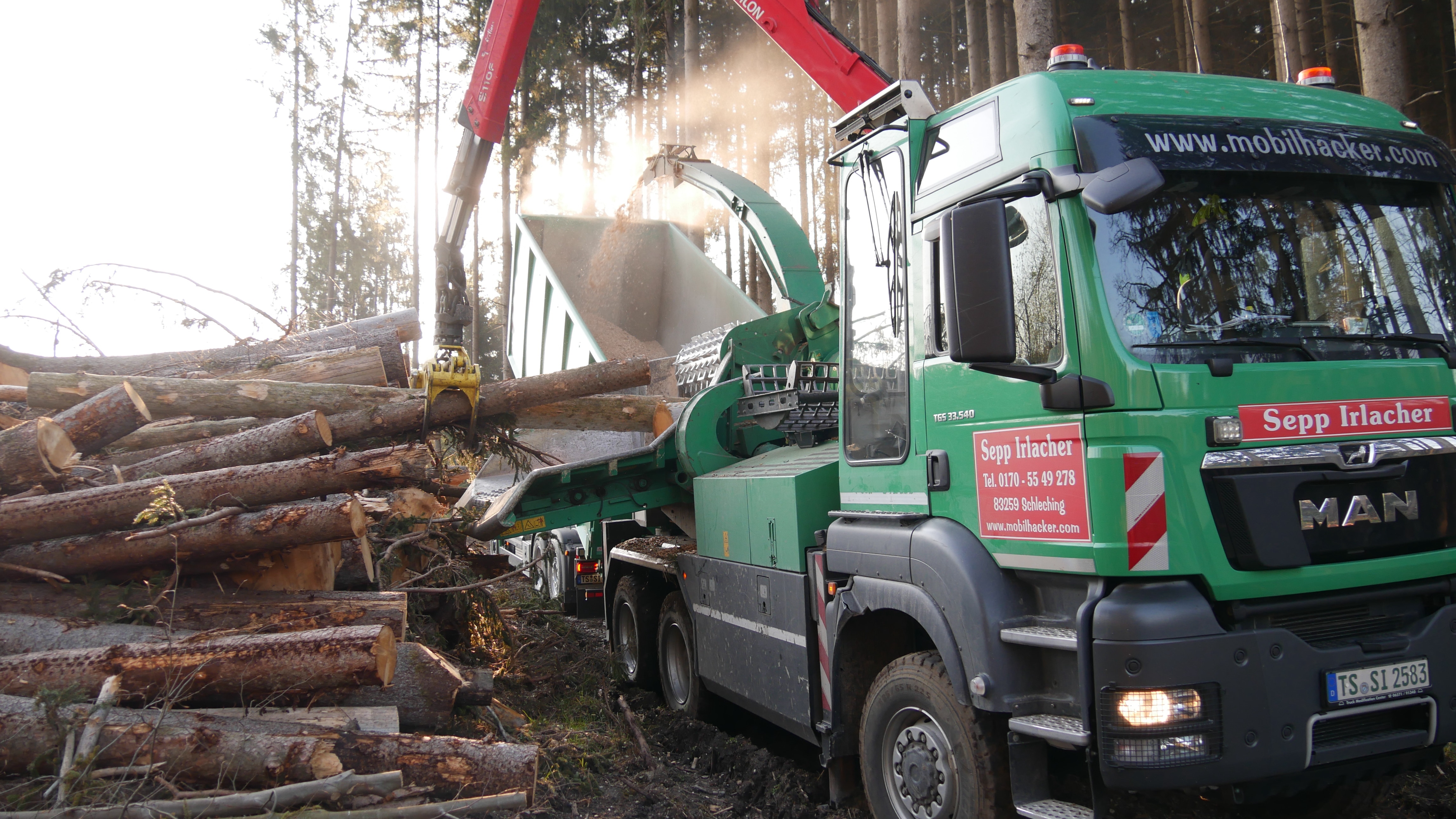 Die ersten Kundschaften waren, wie auch heute noch Landwirte, Heizwerke und die Bayerischen Staatsforsten. Jedoch hat sich die Kapazität und die Anzahl der Kundschaften um ein vielfaches erhöht. Aufgrund der guten Auftragslage wurde bereits im Herbst 2004 ein neuer Zapfwellenhäcksler der Fa. Jenz erworben. 2007 wurde dann der erste Arbeiter eingestellt und zusätzlich ein neuer Jenz Zapfwellenhäcksler sowie ein Fendt Vario 936 angeschafft. Da sich mit der steigenden Zahl der Aufträge auch der Arbeitsradius auf bis zu ca. 150 Km erweitert hat, wurde 2009 der erste Zapfwellenhacker gegen den ersten Lastwagenhäcksler einen „Chippertruck“ ausgetauscht. In den folgenden Jahren wurden die Arbeitsmaschienen turnusmäßig erneuert und der gesamte Fuhrpark besteht aktuell aus 3 Lastwagenhäcksler, 4 Containerlastzügen mit Schlittenanhängern und ca. 20 Containern. Die Firma Mobilhacker besteht aktuell aus 6 Vollzeitangestellten. Zwei davon und vor allem der Chef selber fahren mit den Häckslerlastwagen und 4 Angestellte sind für den Hackschnitzltransport mit den Containerlastwägen zuständig. Im Jahr 2016 haben wir auf dem Firmengelände eine große Maschinenhalle gebaut. Die Halle ist 22x40m groß und bietet genügend Platz für eine vollausgestattete Mechaniker Werkstatt mit Hallenkran und Reparaturgrube sowie als Garage für sämtliche Fahrzeuge.